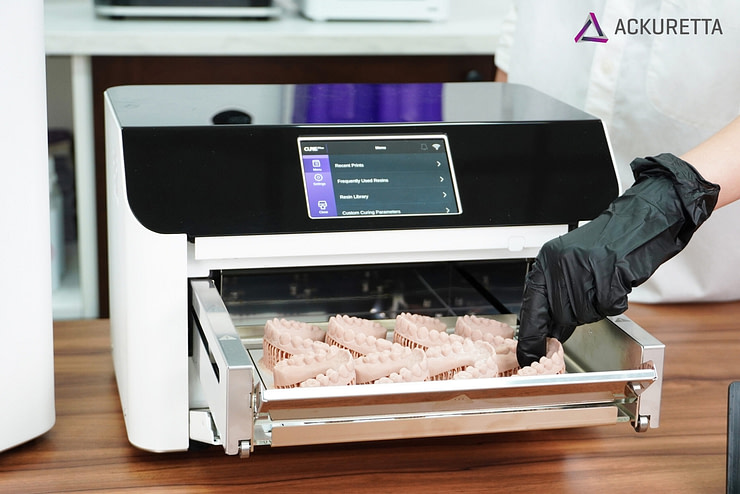 The CURIE Plus also has a touch screen that’s been designed to simplify a range of dental workflows and allows for the monitoring of curing parameters. The CURIE Plus fits into Ackuretta’s printing ecosystem, meaning it can be easily integrated with the popular SOL printer.