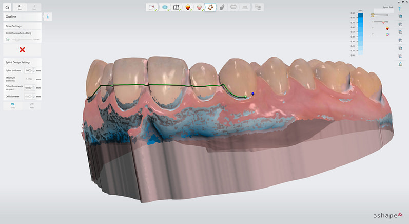 I utilized 3Shape Splint Studio, a module within the 3Shape Unite Platform, to plan and design the bite splint.