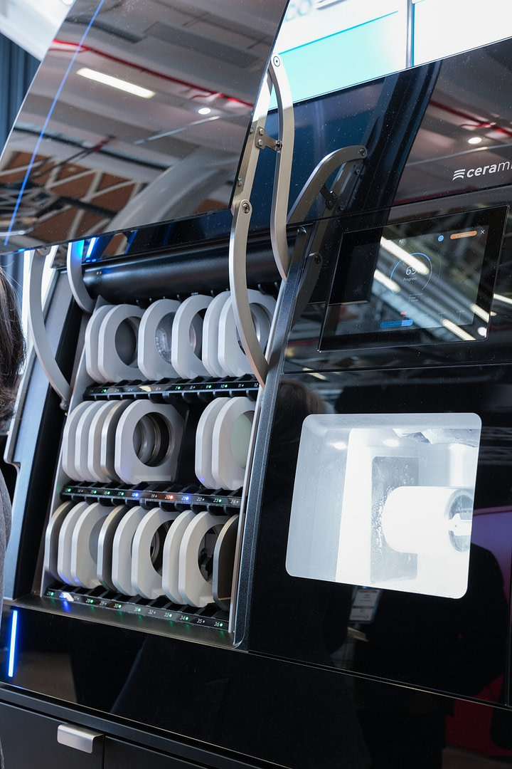 Fully automated Ceramill Matik milling unit from Amann Girrbach showcasing 36 planks.