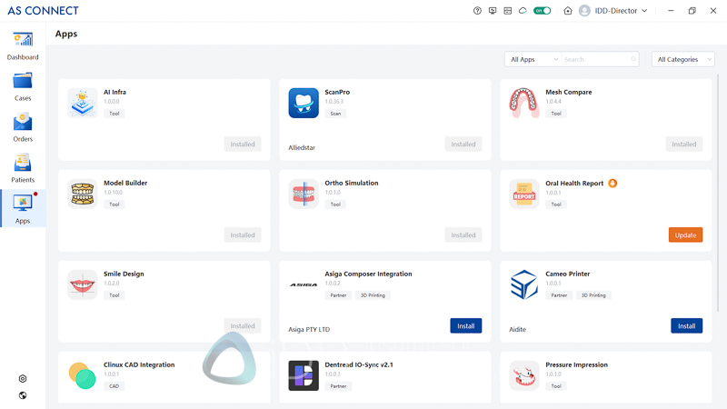Like most scanner manufacturers, Alliedstar has developed a suite of software applications to enhance the scanner's capabilities beyond basic impression taking. The AS Connect platform features a growing library of apps, each designed to address specific clinical needs. While the practical utilization of these apps varies among clinicians, they've become an expected feature in the competitive scanner market.