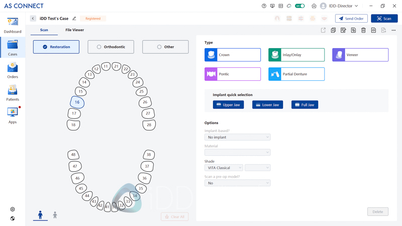 The new software, called AS Connect, bears similarities to Medit's interface design – which is actually a positive, given Medit's reputation for user-friendly software. The left sidebar provides access to all cases, patients, and scans, with standard patient management tools for creating cases, retrieving previous work, and exporting scan data.