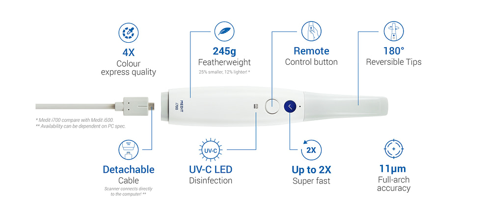 - 2021: Medit i700 - A significant leap forward in speed and accuracy + single cord application.