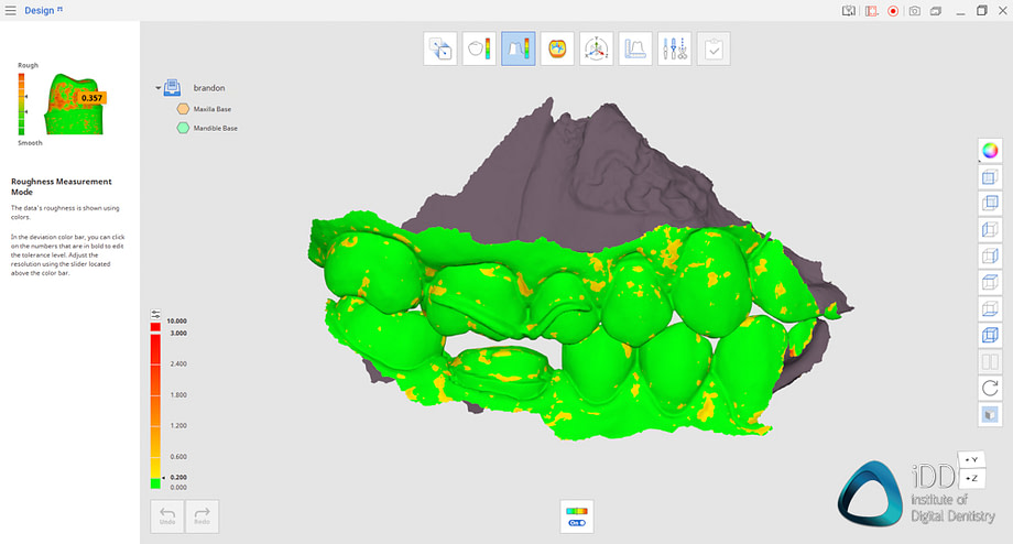 Hence, for most of us that don't enjoy tinkering with 3D data for fun, the Medit Design app will primarily be used to compare data from 2 or more scans. This tool allows you to see the differences in data sets. A software feature that is commonplace across many intraoral scanners and is often called patient monitoring.