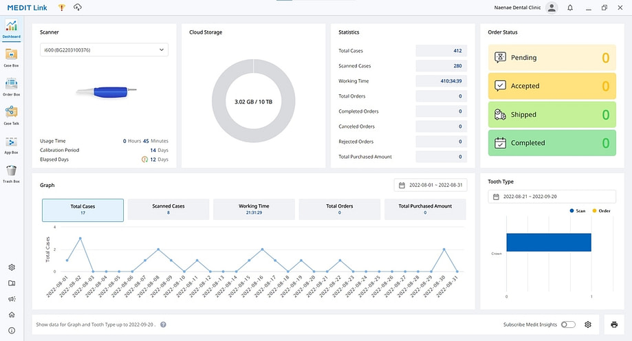 The Medit Link software is the brains of the entire system. It is what runs the scanner and cloud storage.