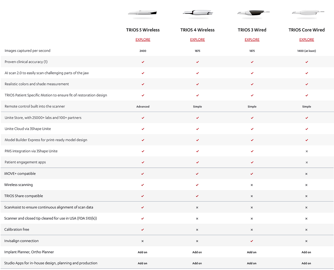 The other difference between TRIOS 3 and TRIOS CORE is that there is no PMS integration and CORE doesn’t have Move+ compatability. It is only a laptop scanner.